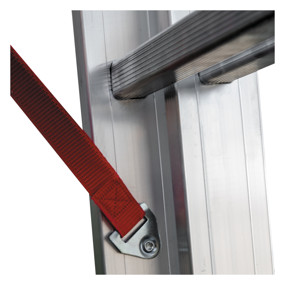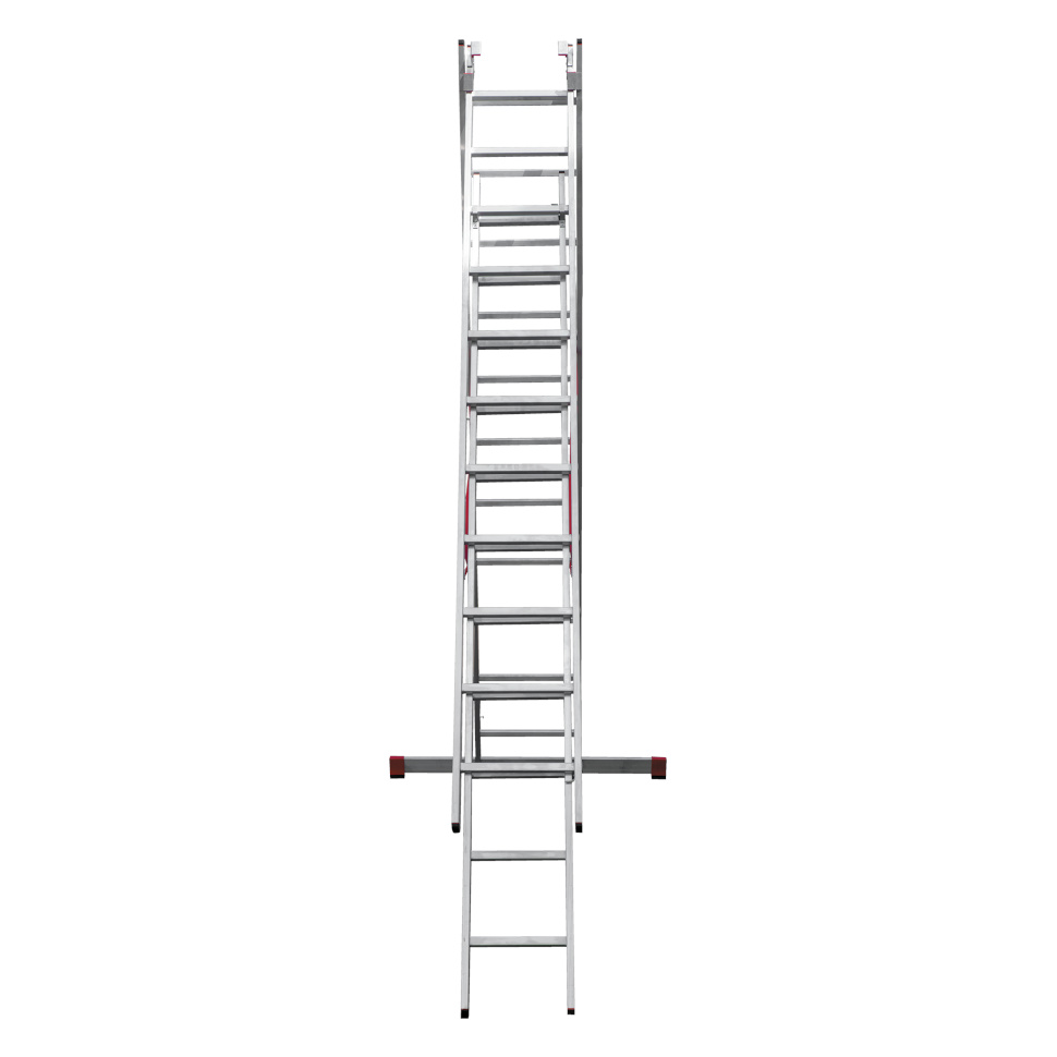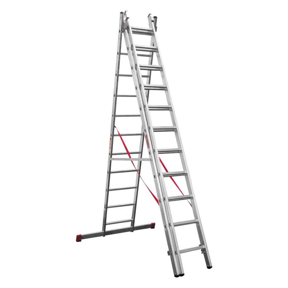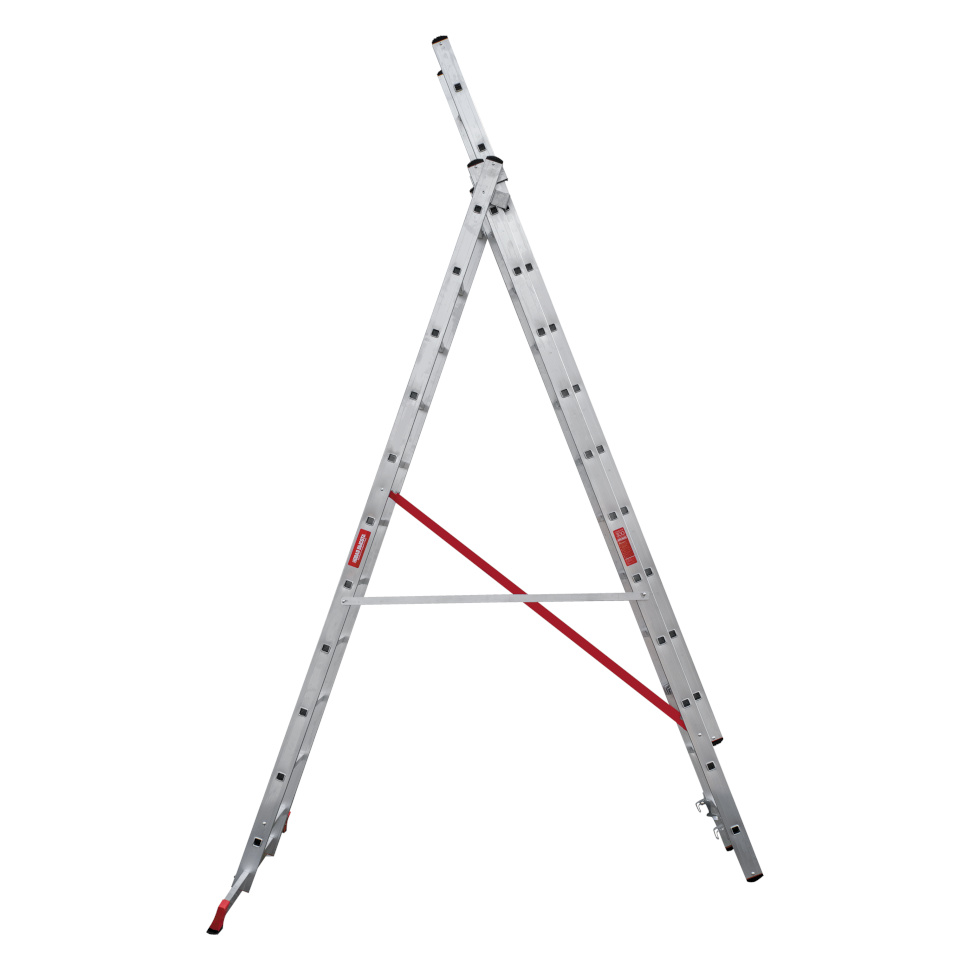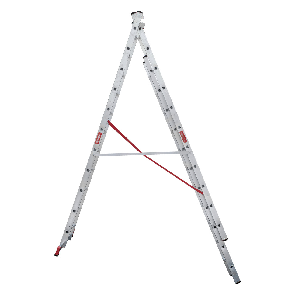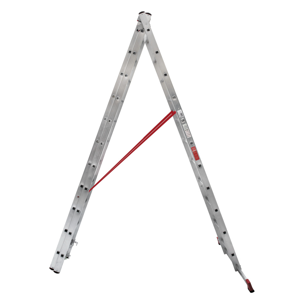 Профессиональная трехсекционная лестница NV3230 изготовлена с применением технологии многократной развальцовки соединений ступеней со стойками, что обеспечивает: