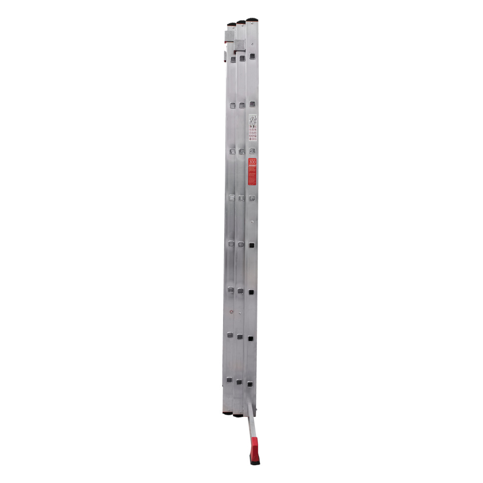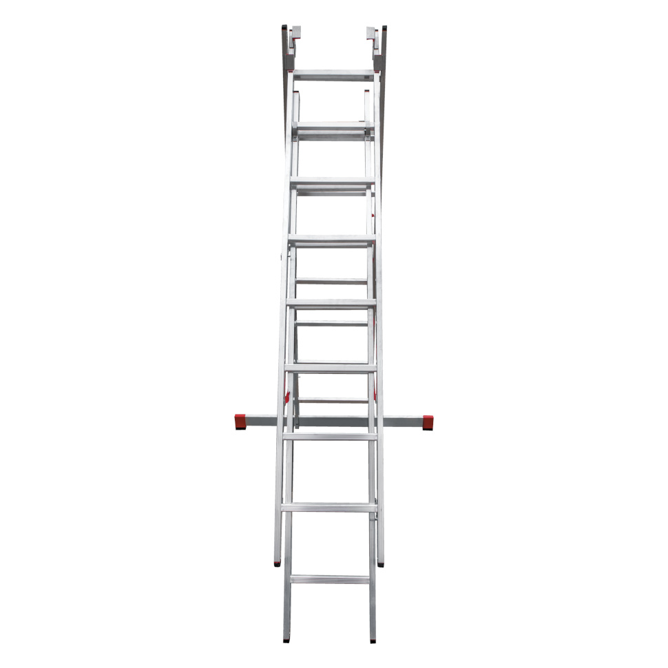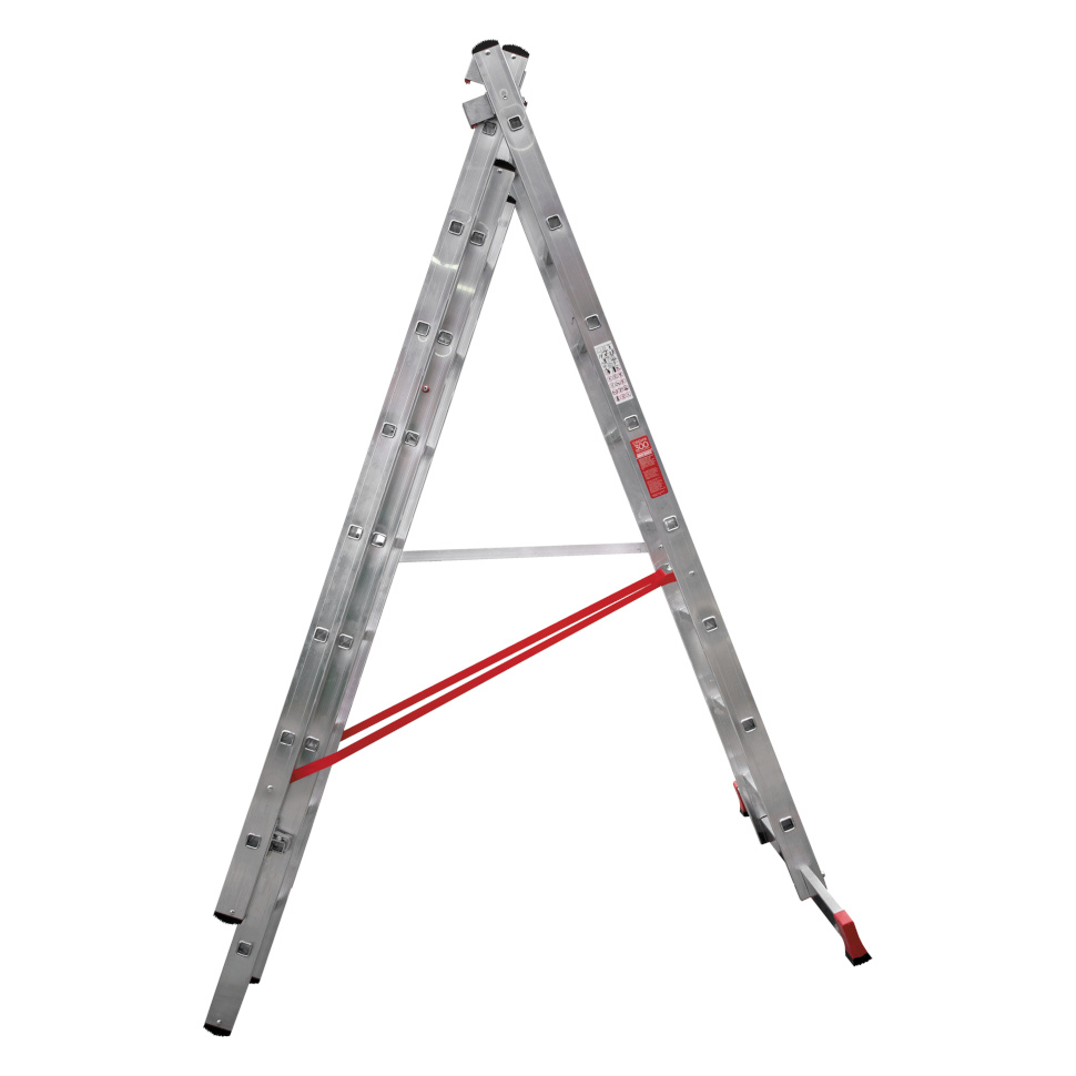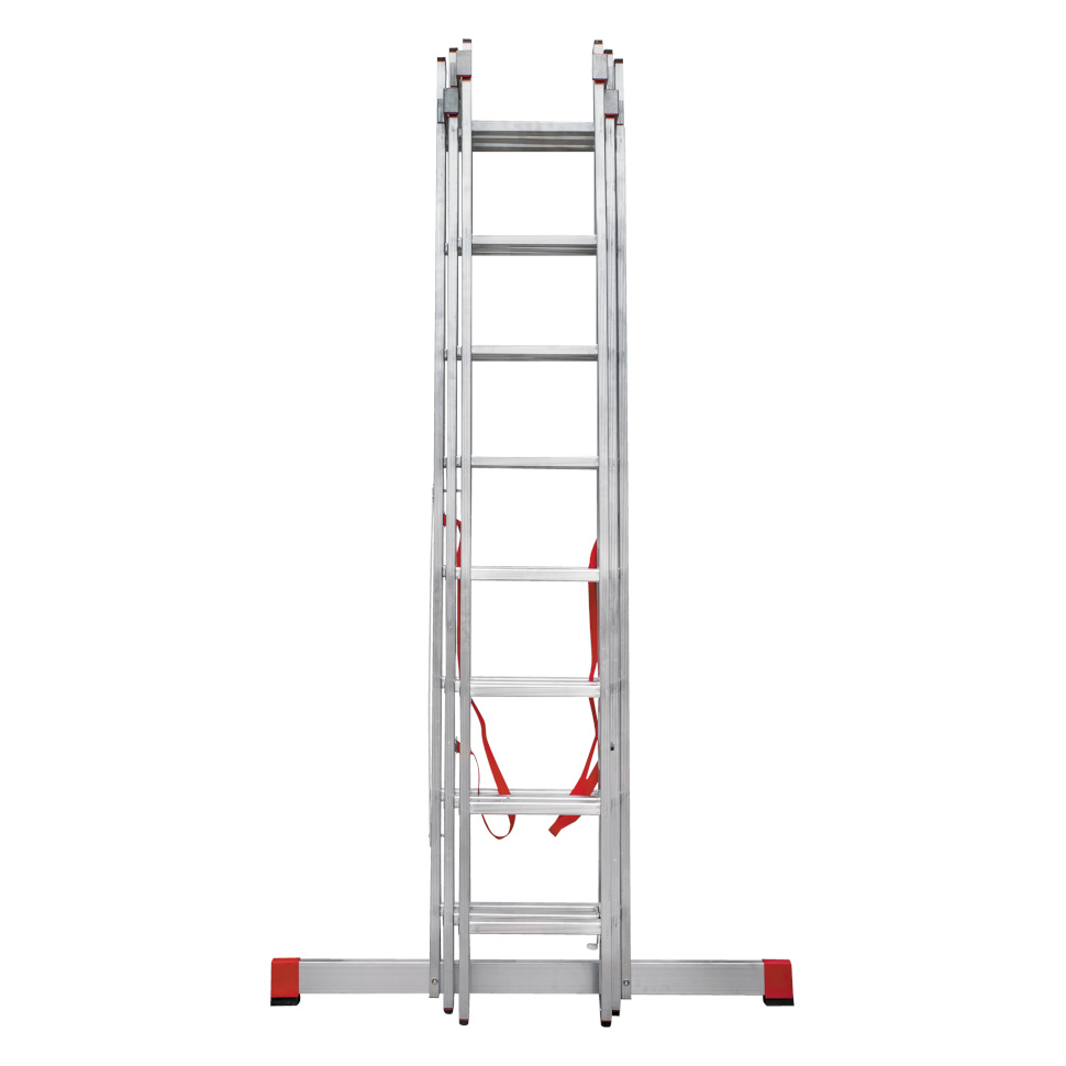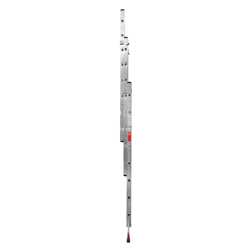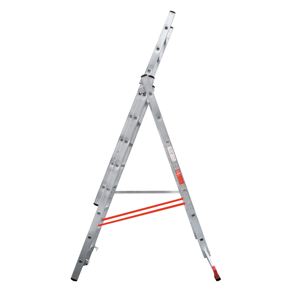 Профессиональная трехсекционная лестница NV3230 изготовлена с применением технологии многократной развальцовки соединений ступеней со стойками, что обеспечивает: