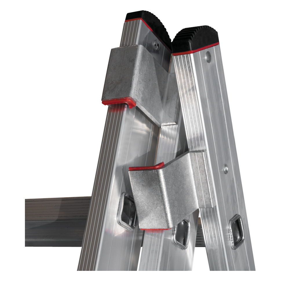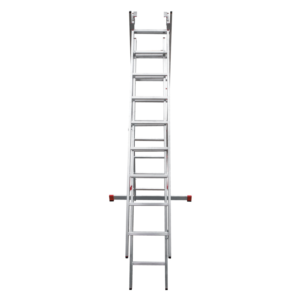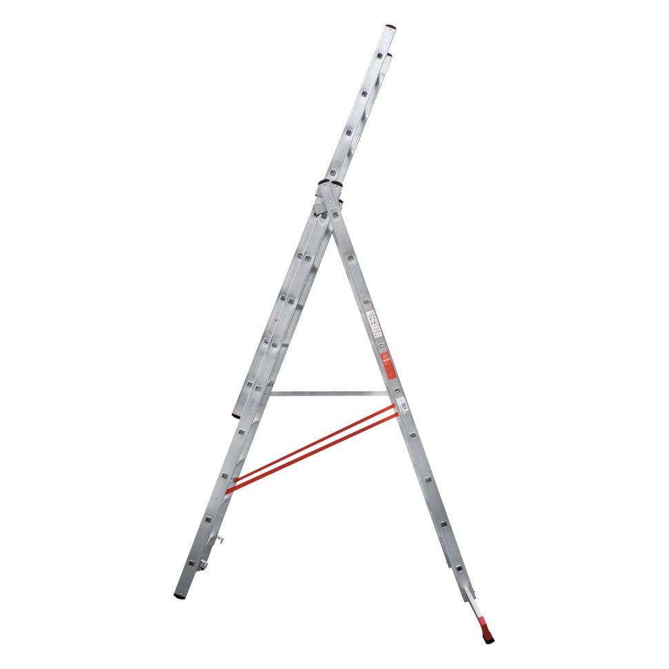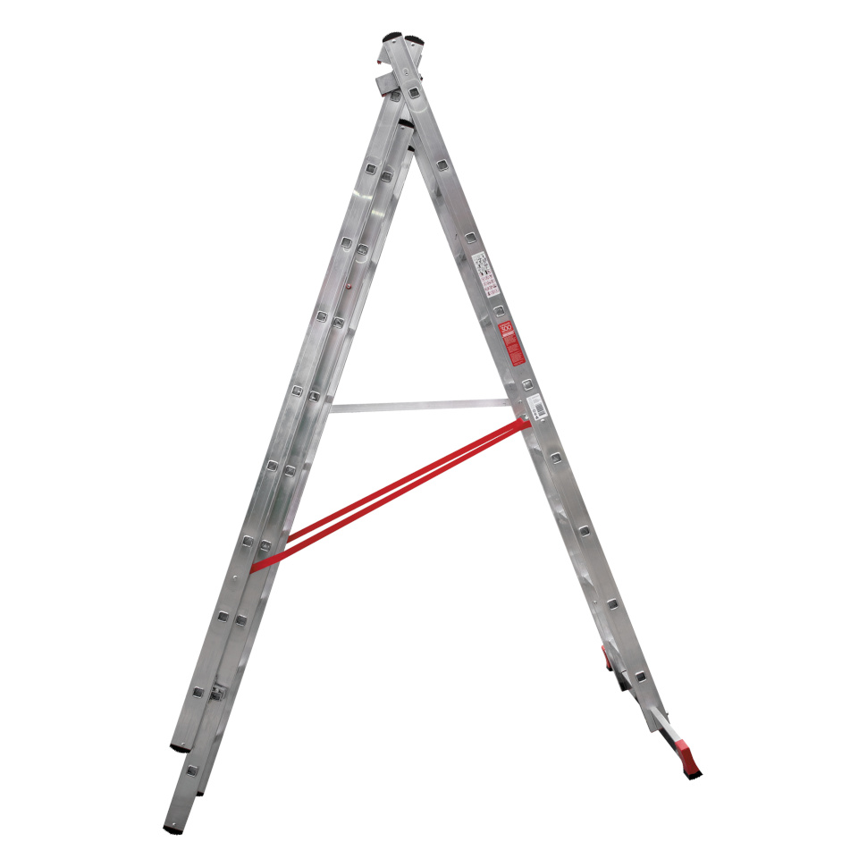 Профессиональная трехсекционная лестница NV3230 изготовлена с применением технологии многократной развальцовки соединений ступеней со стойками, что обеспечивает: