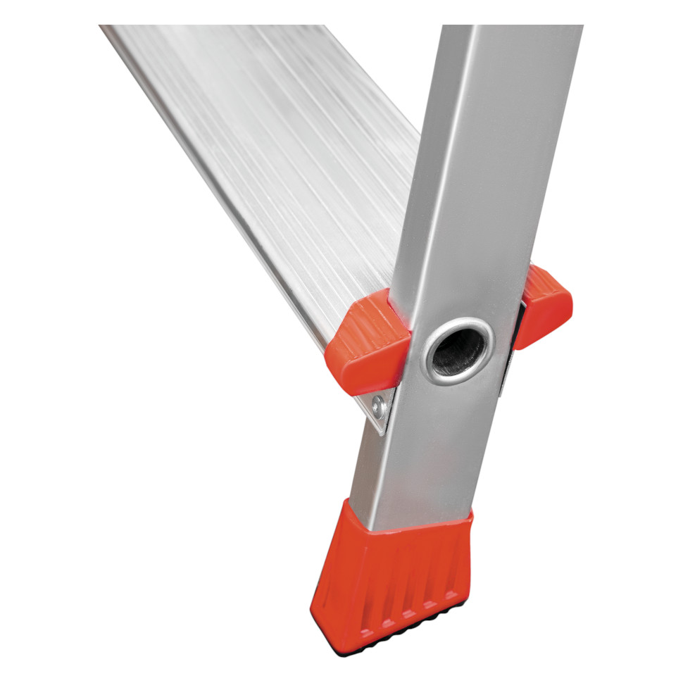 Башмаки, расположенные на ножках секций выполнены из прочного 2х-компонентного пластика, который исключает как возможность скольжения стремянки, так и возможность повреждения ей поверхности, на которой она стоит.