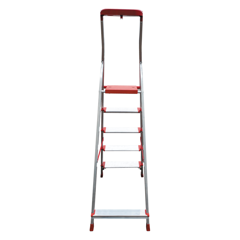Устойчивость стремянки повышена, посредством дополнительной опорной ступени, расположенной на заднем каркасе.