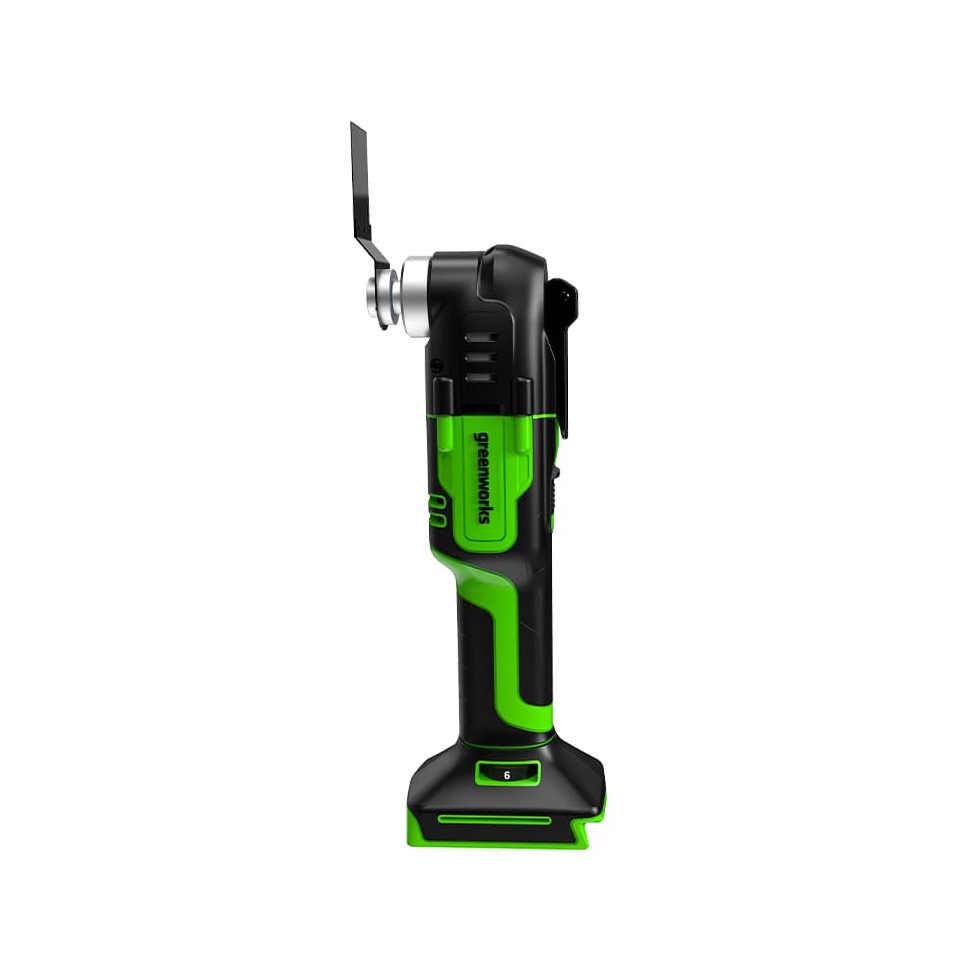 2. Мультиинструмент управляется Greenworks Intelligent Power - инновационная система контроля и управления батареей, инструментом и зарядным устройством, что обеспечивает высокую производительность и долгий срок службы.