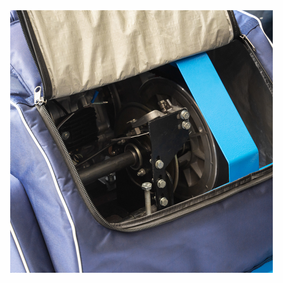 - Комплектный чехол - изготовлен из прочной влагостойкой ткани и оснащен удобными карманами для легкого доступа к узлам обслуживания.