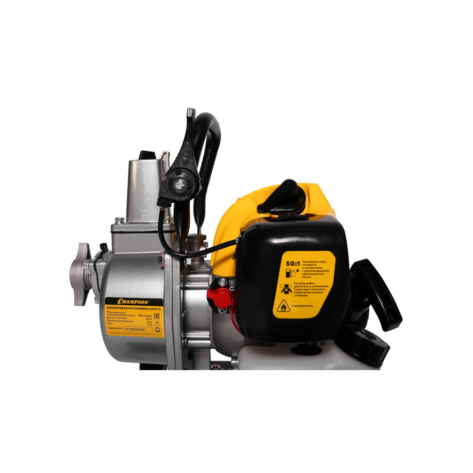 Преимущества Champion GP27-II:Важно: модель GP27-II предназначена для перекачки чистой воды. Для откачки загрязненной жидкости с песком, илом или мелкими камнями требуется специальная грязевая мотопомпа.