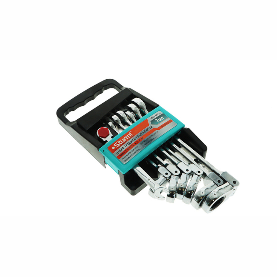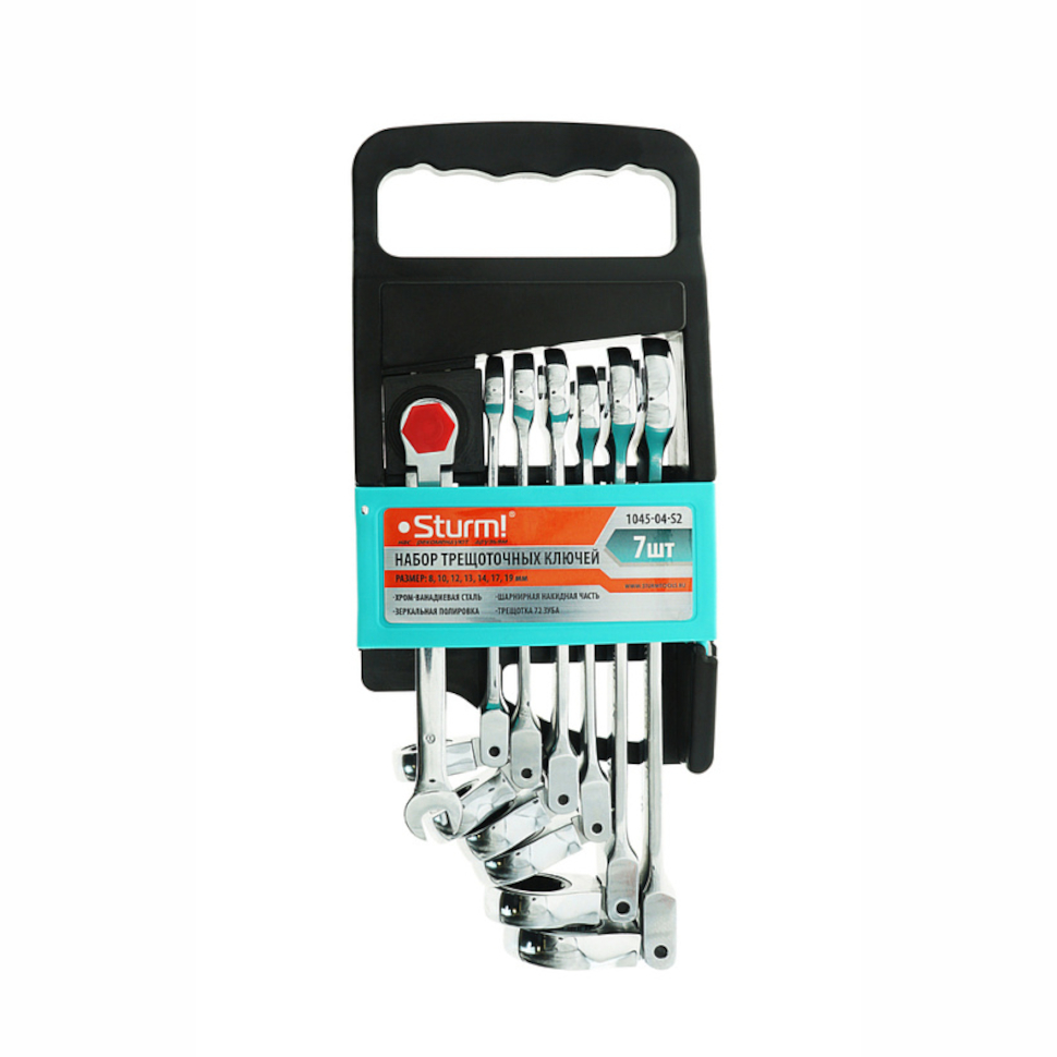 Характеристики Набор ключей комбинированных, трещоточных шарнирных 7 предм., 8-19 мм Sturm (1045-04-S2)