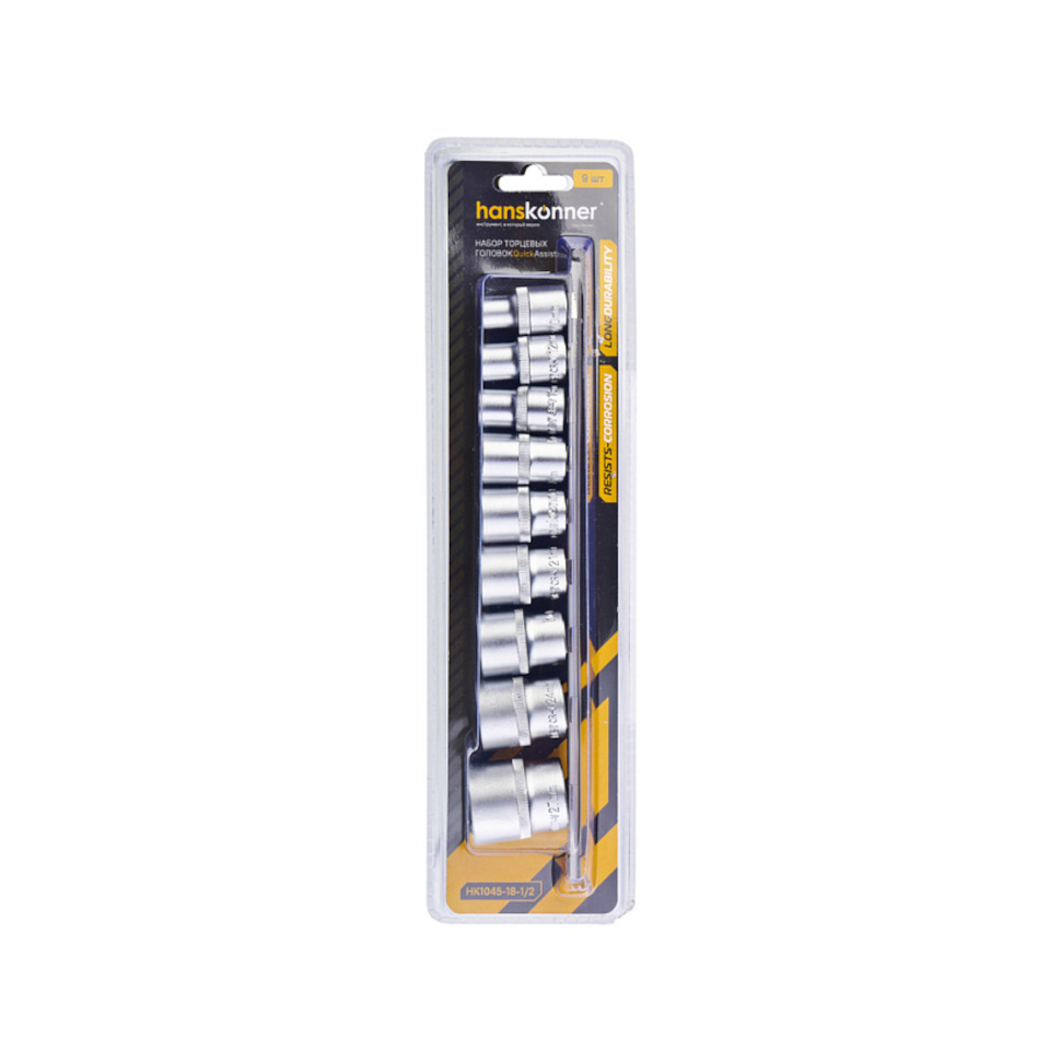 Набор головок Hanskonner 9 шт 10-27 мм, хромованадиевая сталь, посадка 1/2" - идеальный выбор для тех, кто ценит качество, надежность и эффективность в работе с крепежом.