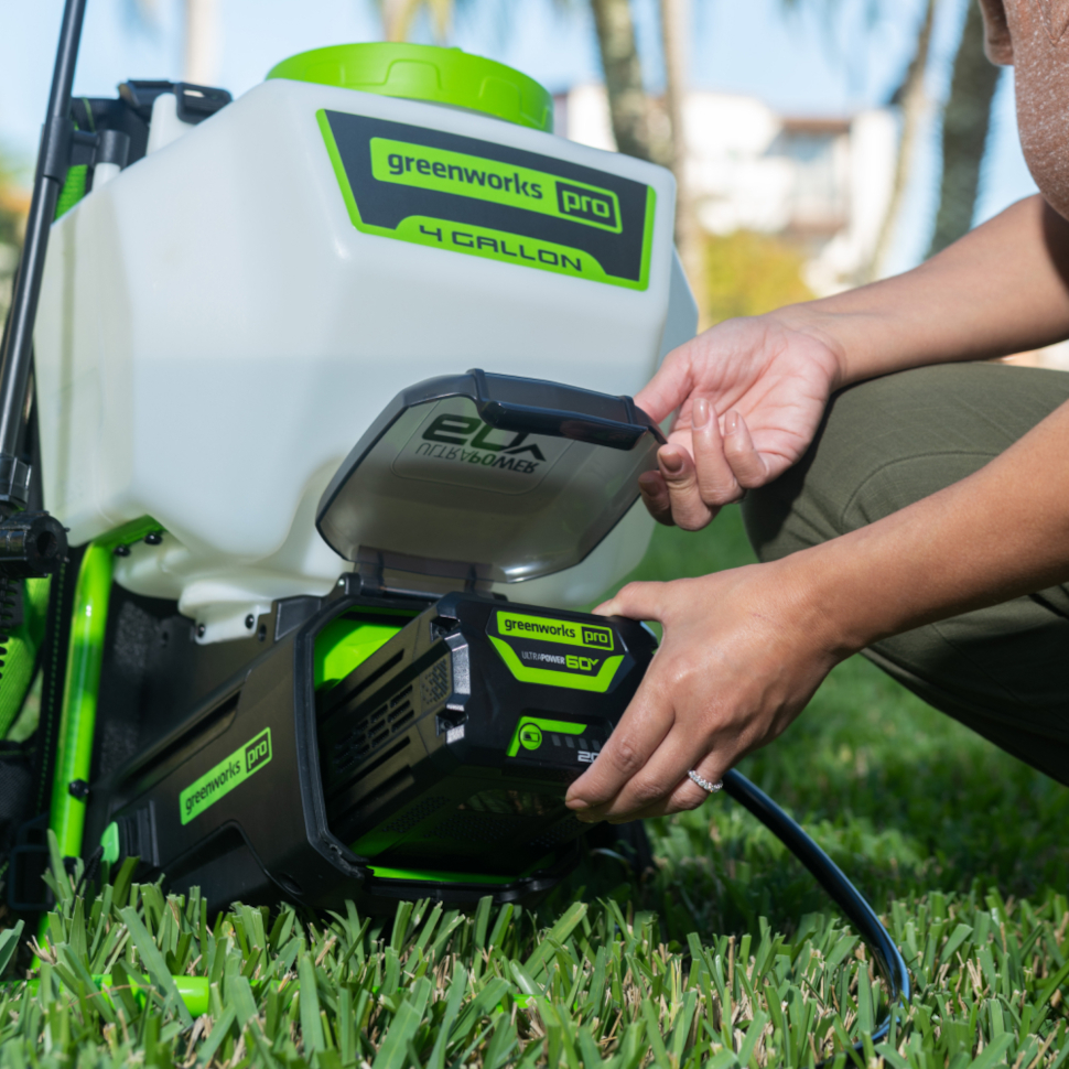Мощный аккумуляторный опрыскиватель Гринворкс 60V отличается высокой производительностью и дальностью - создает давление до 5 бар с производительностью до 1,9 л/мин, обеспечивая равномерное распыление и обработку крон на высоте до 4,5 метров. Значительно эффективнее ручных моделей.