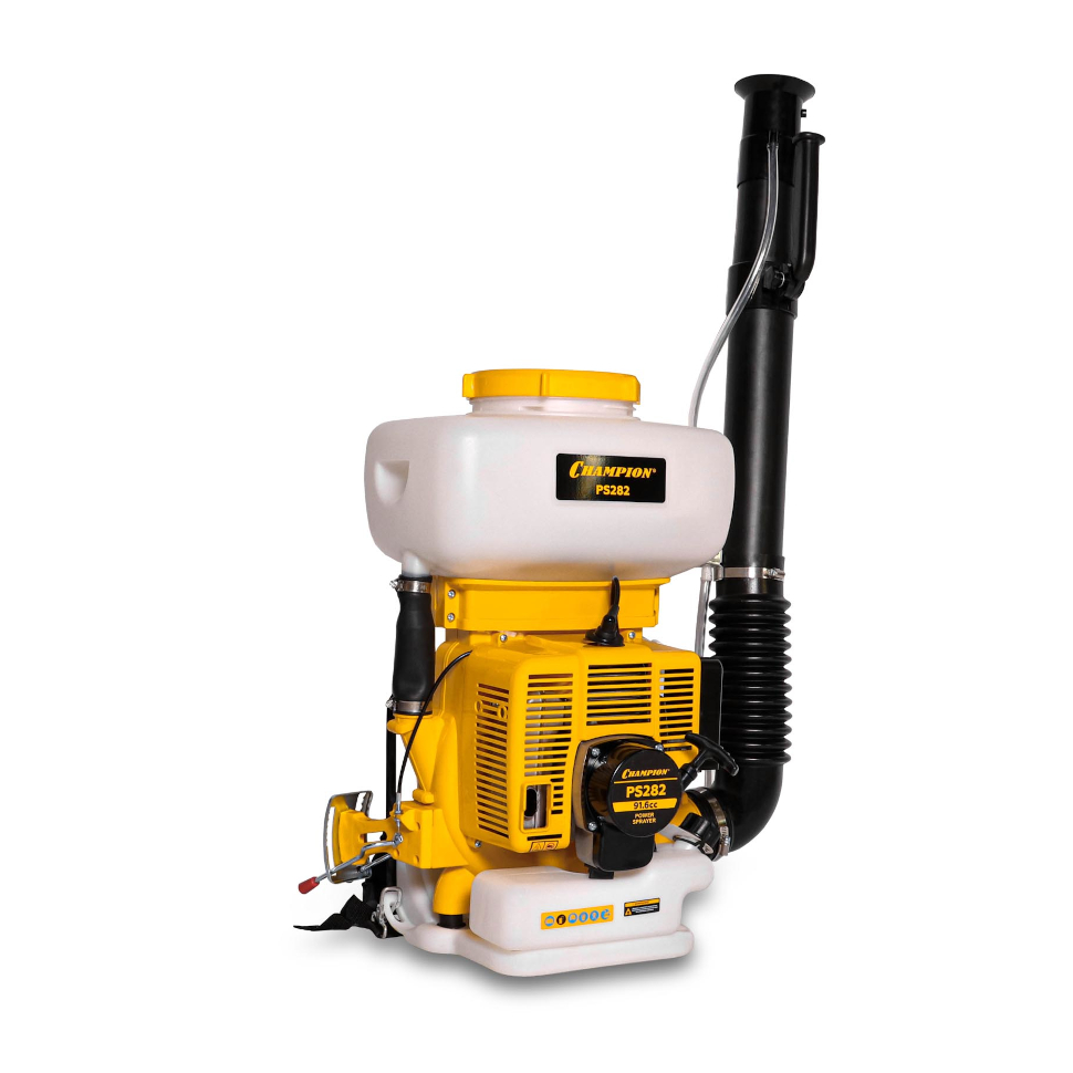 Профессиональный опрыскиватель-распылитель Чемпион PS282 с двухтактным двигателем мощностью 5,4 л.с. демонстрирует высокую эффективность благодаря регулируемой форсунке, позволяющей управлять расходом жидкости от 0,14 до 3,5 л/мин и расходом порошка от 3,5 до 5 кг/мин.