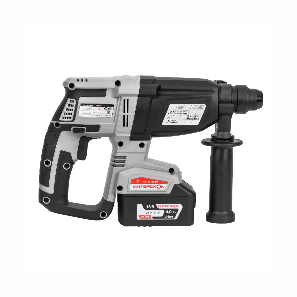 Профессиональный аккумуляторный перфоратор Интерскол ПА-24/18ВМ предназначен для выполнения широкого спектра операций: от сверления отверстий и создания штроб до отбойных работ в бетонных конструкциях, кирпичной кладке и натуральном камне.