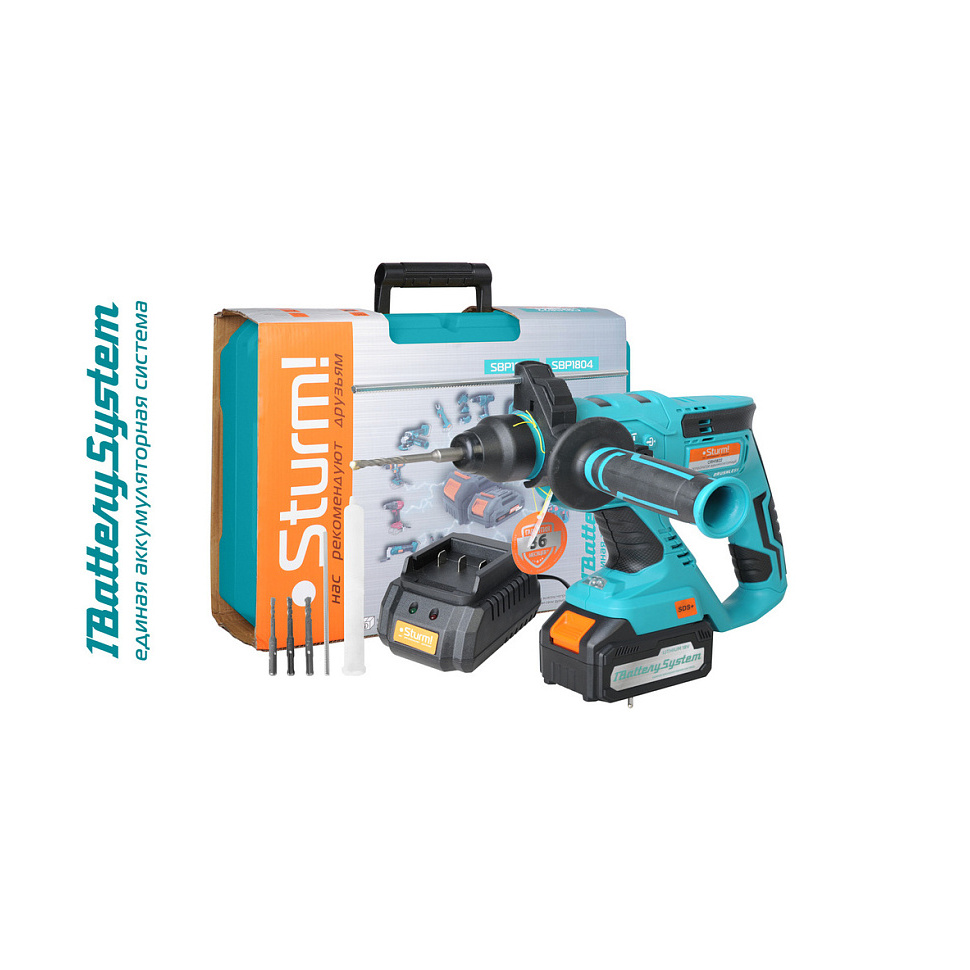 1. Полная автономность и совместимость - работа в системе 1BatterySystem 18В позволяет использовать одни аккумуляторы для всего парка инструментов Sturm. В комплекте поставляется емкий аккумулятор 3 А/ч и ЗУ.