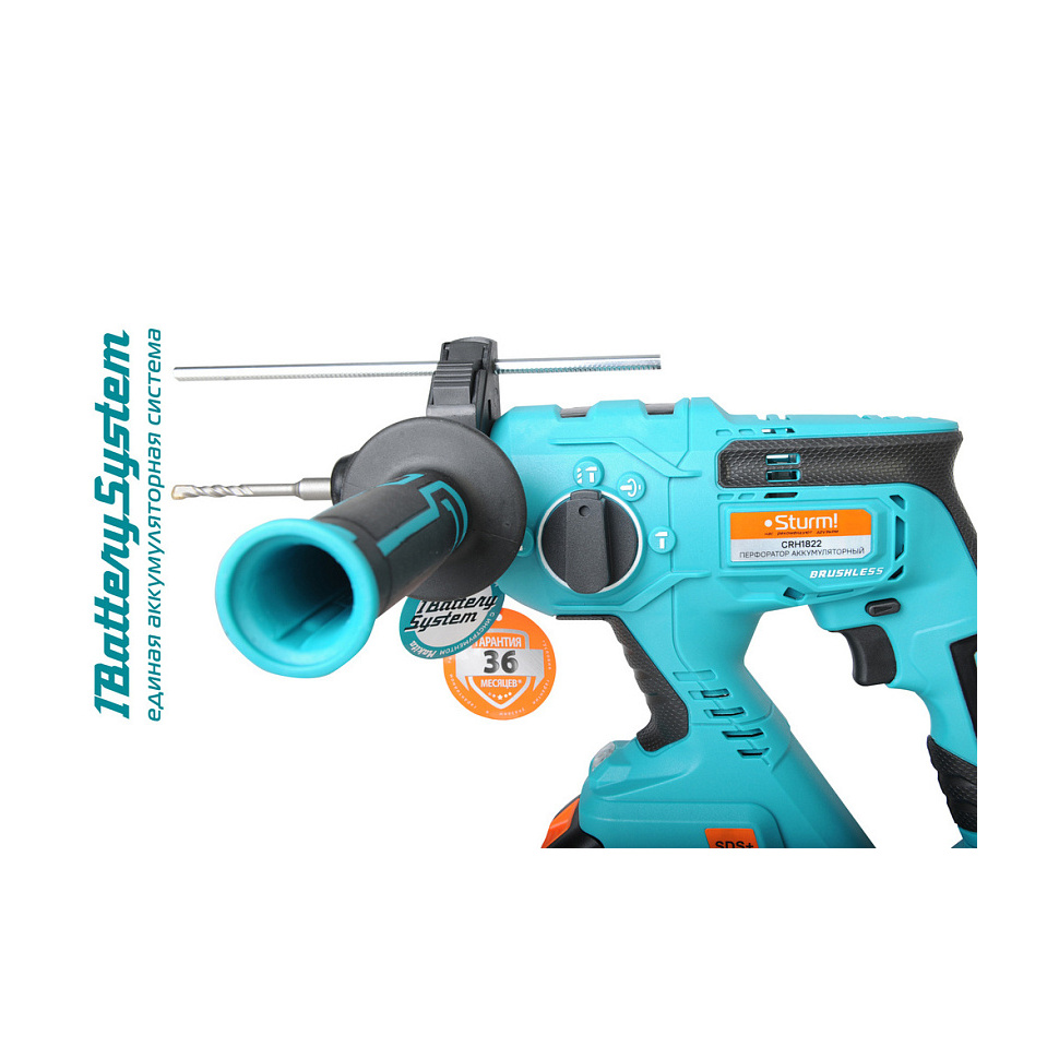 Характеристики Перфоратор аккумуляторный Sturm CRH1822 (1BatterySystem18V, бесщеточный, АКБ 3Ач и ЗУ)