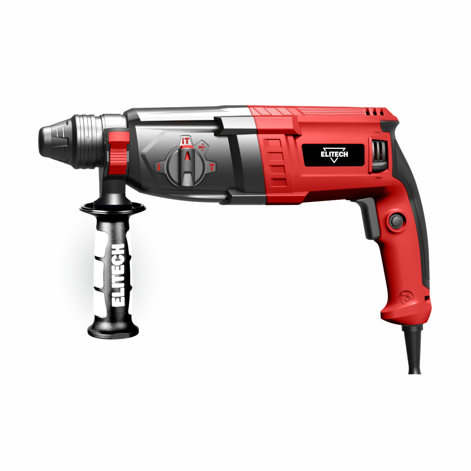 Перфоратор Элитеч П 280РЭМ с патроном SDS-plus мощностью 1000 Вт демонстрирует универсальность благодаря реверсу, позволяющему использовать инструмент в режиме дрели и извлекать застрявшую оснастку.