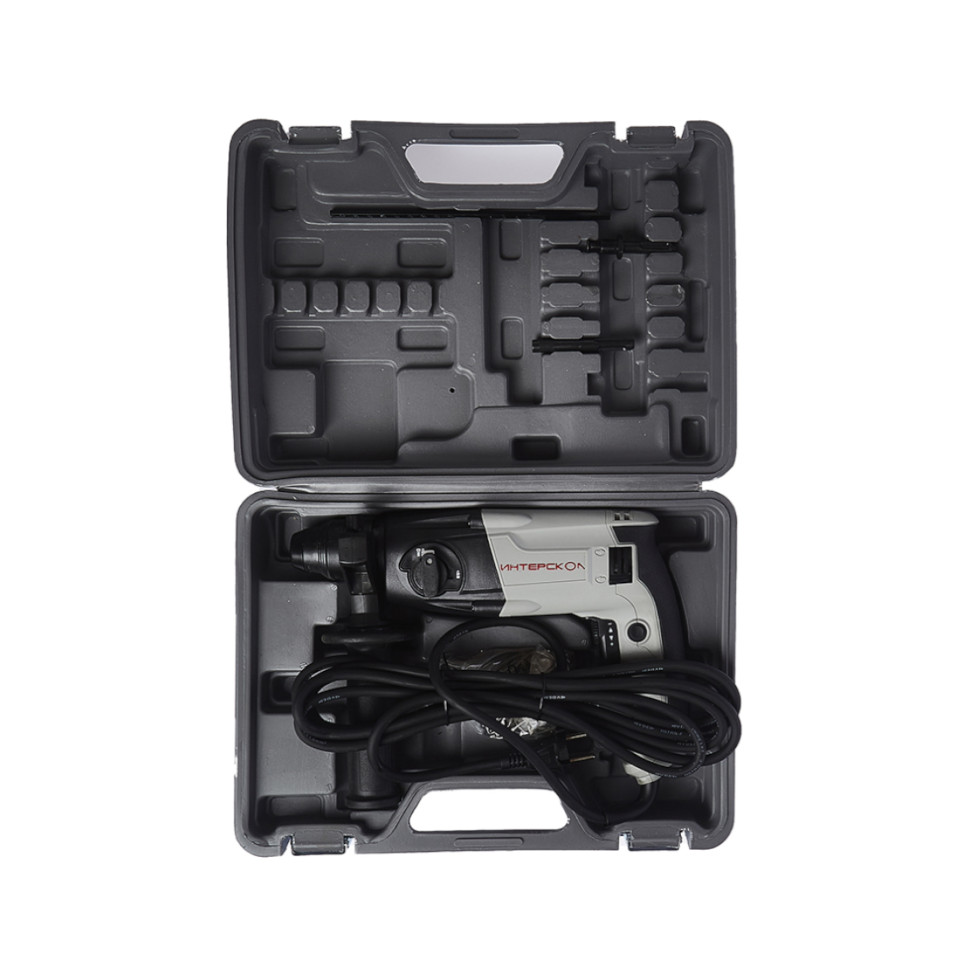 Перфоратор Интерскол П-18/450ЭР (66.0.3.00). Рукоятка боковая. Ограничитель глубины бурения. Руководство по эксплуатации и Инструкция по безопасности. Гарантийный талон. Список сервисных центров. Кейс. |