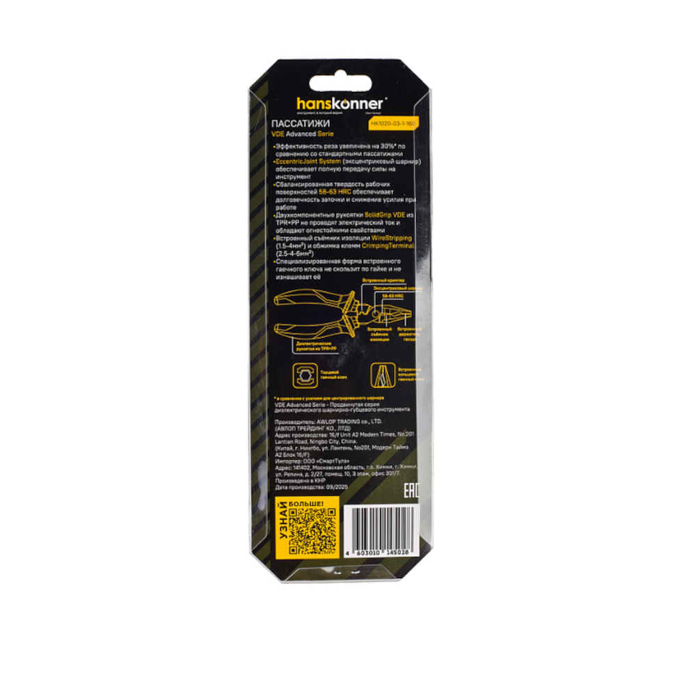 Преимущества пассатижей Hanskonner (HK1020-03-1-160):