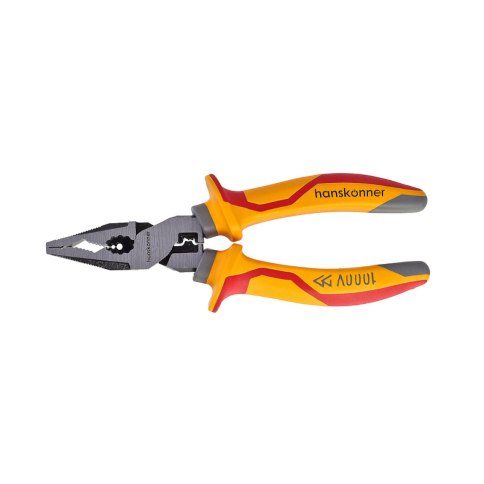 Диэлектрические пассатижи Хансконнер длиной 160 мм отличаются универсальностью благодаря встроенному съемнику изоляции WireStripping (1,5-4 мм2) и обжимке клемм CrimpingTerminal (2,5-4-6 мм2).