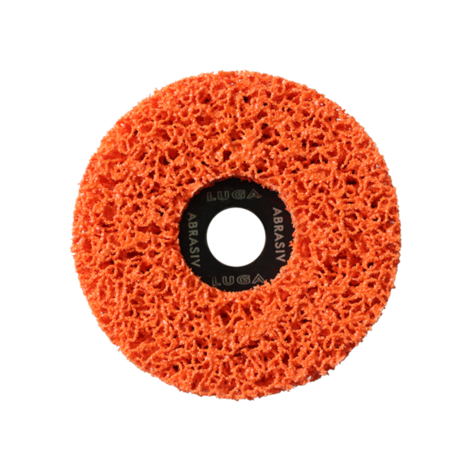 Коралловый абразивный круг Луга оранжевого цвета обладает сбалансированным показателем жесткости для различных условий работы.