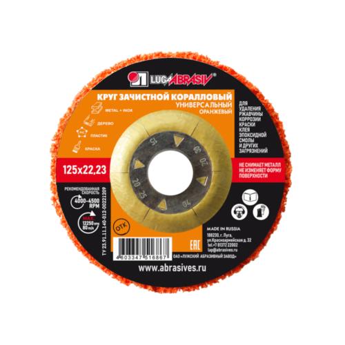 Характеристики Круг зачистной 125х22 коралловый, оранжевый (универсальный) 5шт/уп ЛУГА