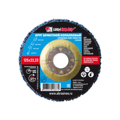 Характеристики Круг зачистной 125x22мм коралловый, синий (средней жесткости) ЛУГА (5шт/уп)