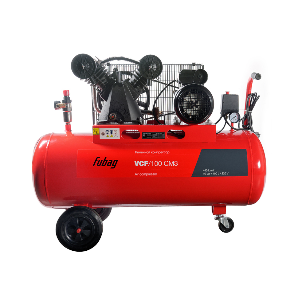 Компрессор Fubag VCF/100 СM3 (45681472). Воздушный фильтр. Транспортировочные колеса. Инструкция. Коробка. |