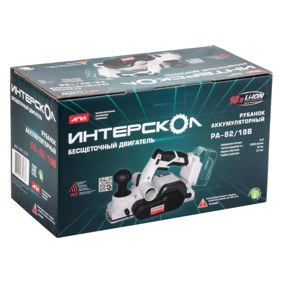 Характеристики Рубанок аккумуляторный Интерскол РА-82/18В (694.1.0.70)