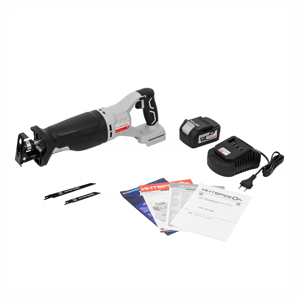 Пила сабельная аккумуляторная Интерскол НПА-150/18ВМ (763.4.1.70). Батарея аккумуляторная 18В 4А/ч. Устройство зарядное. Полотно ножовочное по дереву. Полотно ножовочное по металлу. Руководство по эксплуатации и инструкция по безопасности. Гарантийный талон. Коробка. |