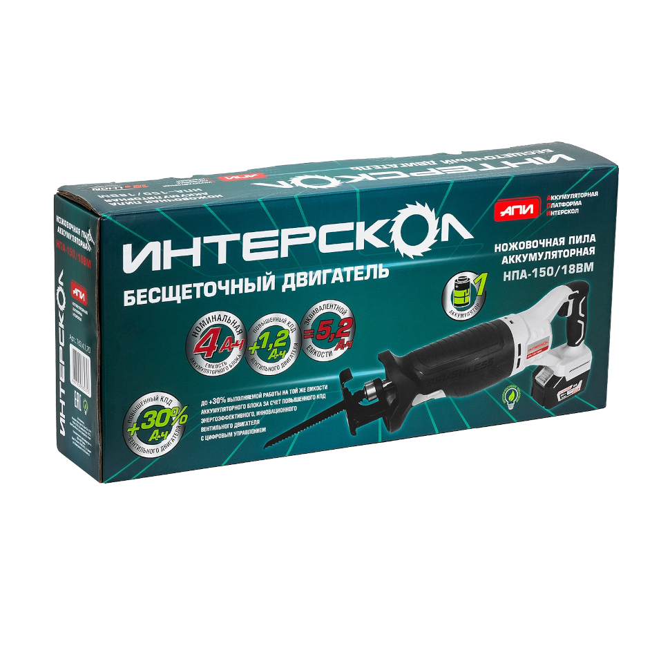 Профессиональная бесщеточная аккумуляторная сабельная пила Интерскол НПА-150/18ВМ оснащается современным бесщеточным двигателем с цифровым управлением.