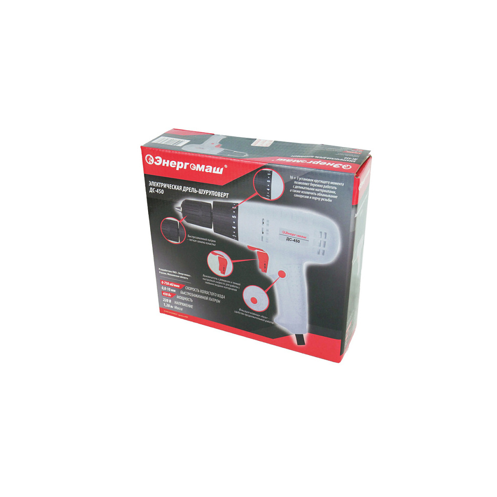 Сетевой шуруповерт Энергомаш ДС-450. Инструкция по эксплуатации. Инструкция по безопасности. Коробка. |
