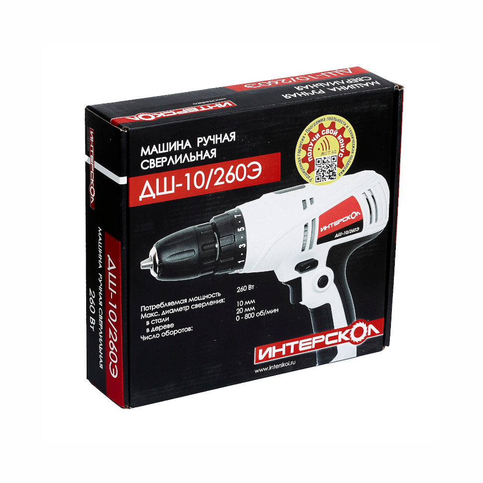 Характеристики Шуруповерт сетевой Интерскол ДШ-10/260Э (210.1.1.00)