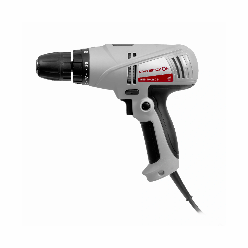 Сетевая дрель-шуруповерт Интерскол ДШ-10/260Э имеет конструкцию, исключающую простои, связанные с разрядкой источника питания.