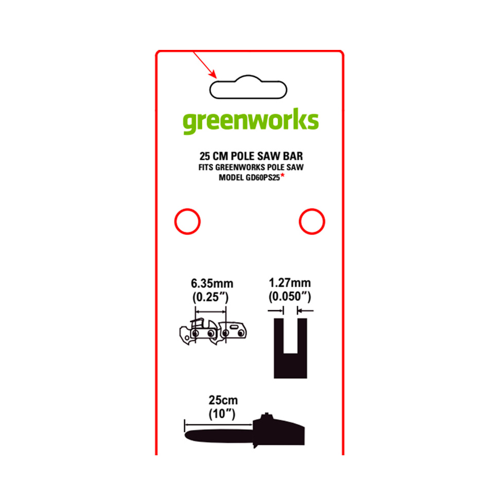 Характеристики Шина 10"/25см Greenworks (2949407) (для 60В высотореза 1402107)
