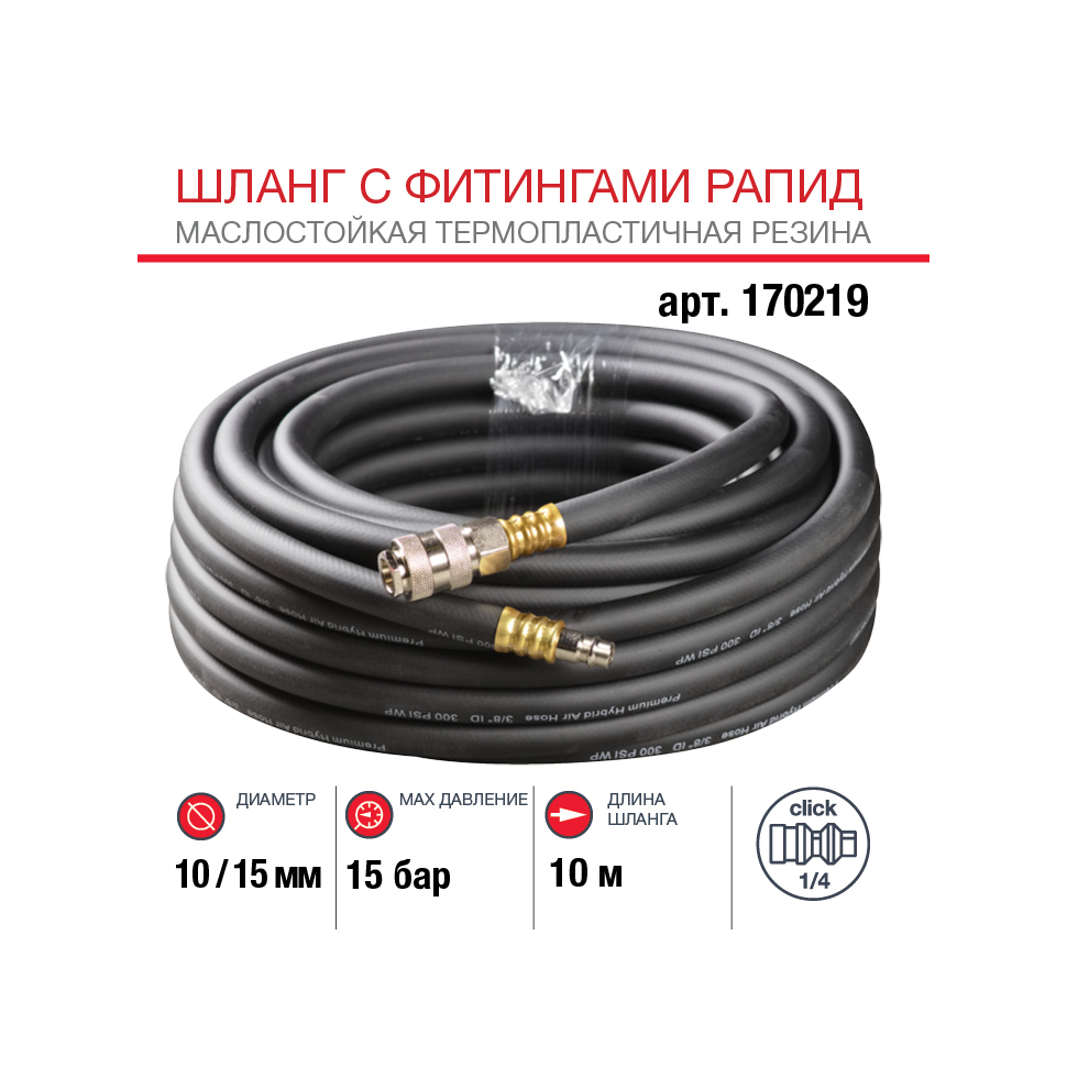 Маслостойкий шланг Фубаг 170219 благодаря комплектации фитингами рапид обеспечивает мгновенное подключение к инструменту без дополнительных аксессуаров.