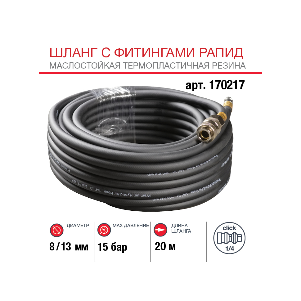 Маслостойкий шланг Фубаг 170217 благодаря комплектации фитингами рапид обеспечивает мгновенное подключение к инструменту без дополнительных аксессуаров.