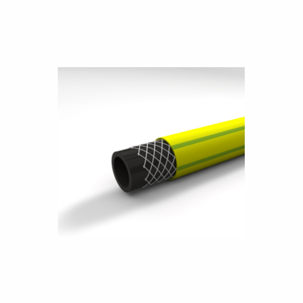 Прочный 3-слойный армированный поливочный шланг KIT FITT MIMOSA 3/4" для интенсивного использования благодаря усиливающему слою, который предотвращает растяжение и разрыв шланга под давлением, а также защищает от механических повреждений.