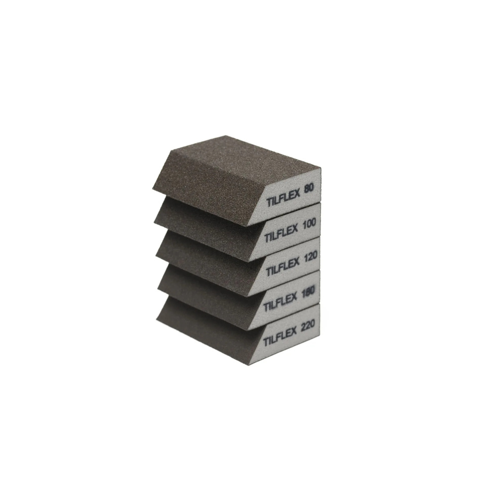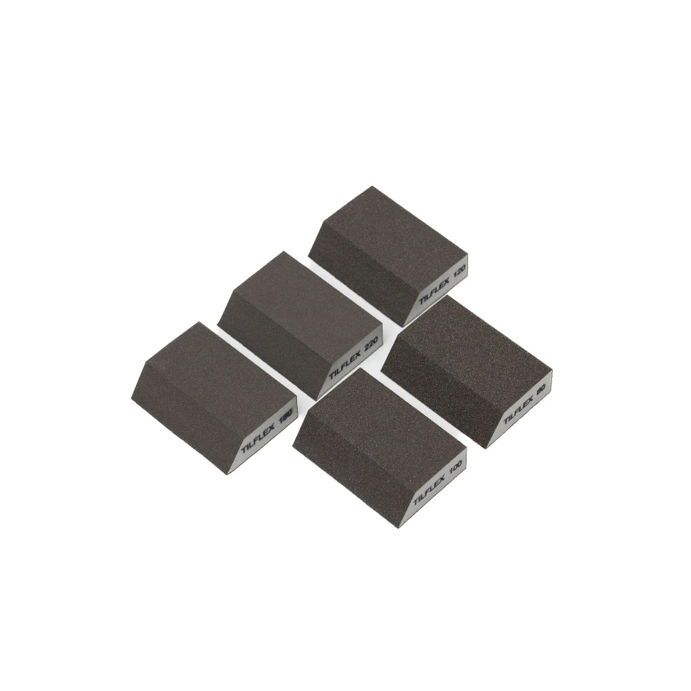 Абразивная губка Tilflex (шлифовальный блок) со скошенным краем с зернистостью P80 демонстрирует универсальность при ручной обработке различных материалов.