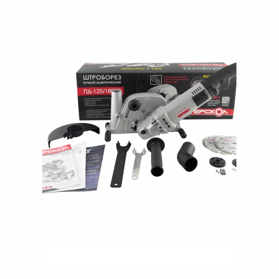 Унифицированный моторный блок. Кожух штробореза. Кожух УШМ. Ключ специальный. Рукоятка вспомогательная. Диск алмазный 125мм - 2шт. Дистанционные шайбы - 1комплект. Фланец зажимной. Руководство по эксплуатации c инструкцией по безопасности. Гарантийный талон. Коробка. |