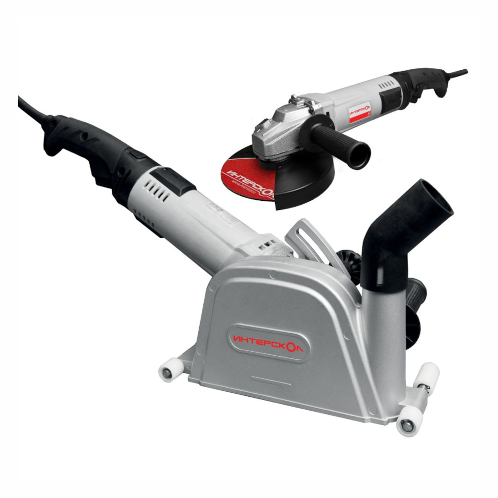 Профессиональная система бетонообработки 2-в-1 Интерскол - бороздодел (штроборез) 125 мм и угловая шлифовальная машина 150 мм в одном решении имеет прорезиненную рукоятку и сбалансированную массу 3.9 кг, которые обеспечивают комфорт при продолжительной работе.