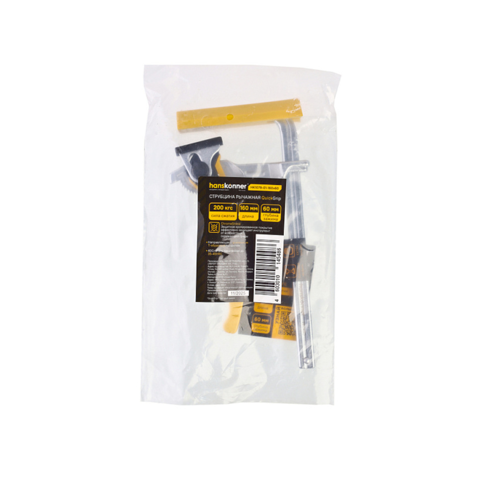 Характеристики Струбцина 160x60мм, 40CR сталь, хромированная Hanskonner (HK1079-01-160x60)
