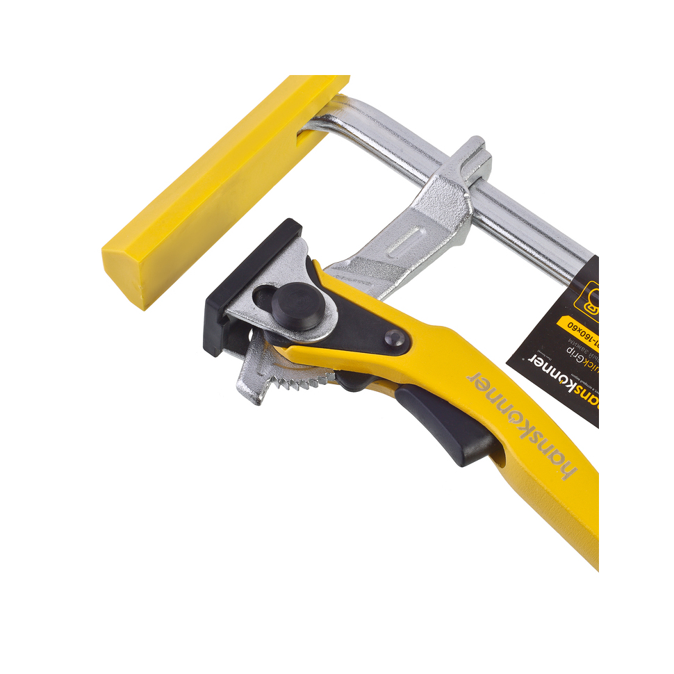 Струбцина Хансконнер с зажимом 160x60 мм демонстрирует высокую надежность благодаря прецизионной закалке направляющей.