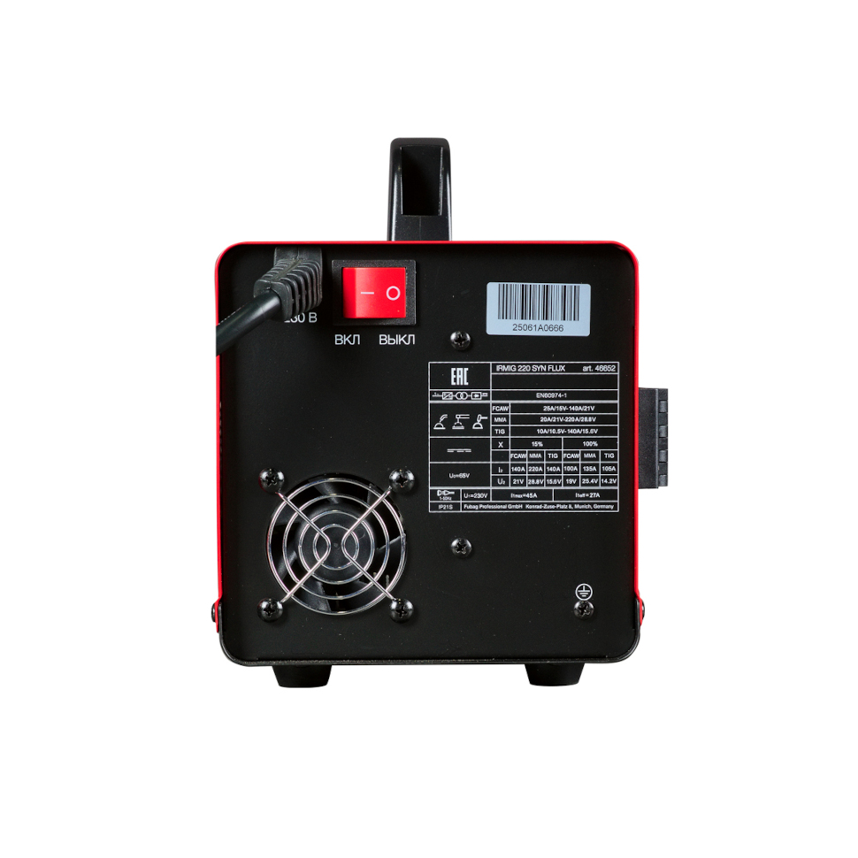 Характеристики Сварочный инверторный полуавтомат Fubag IRMIG 220 SYN FLUX (10,3кВт, MIG/MMA/TIG, 5,6кг) 46652