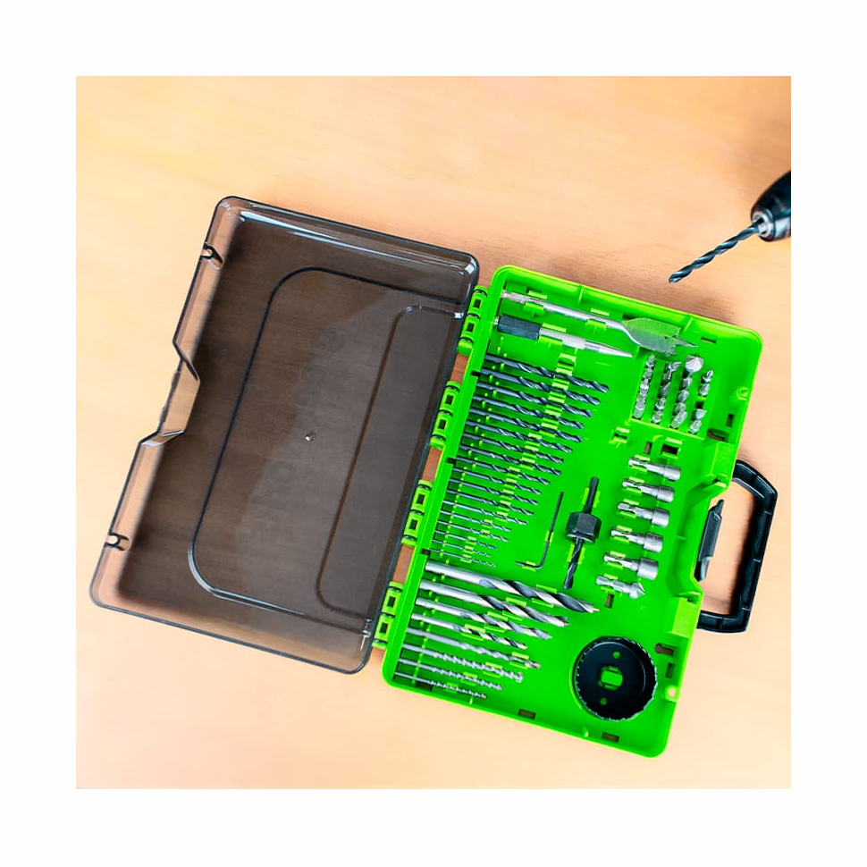 Характеристики Набор сверл, бит и коронок 60 предметов, в кейсе GREENWORKS (2944507)