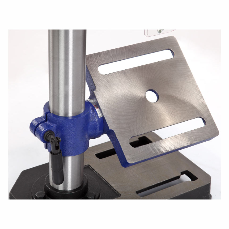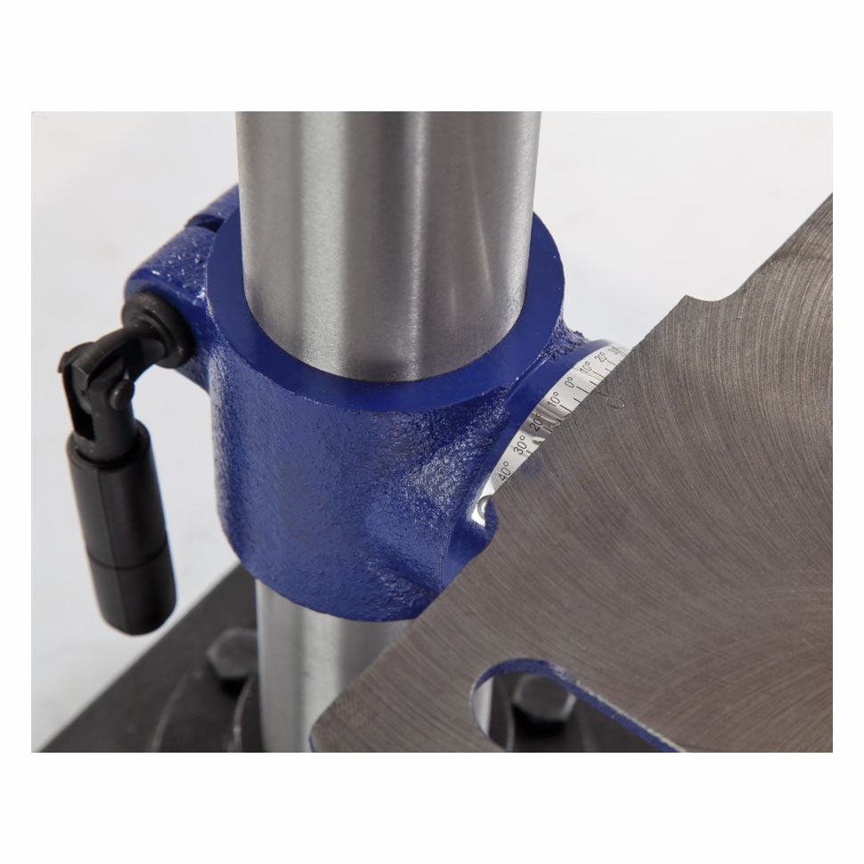 7. Рабочий стол регулируется по углу наклона от -45° до +45° и фиксируется на колонне диаметром 48 мм с помощью зажима.