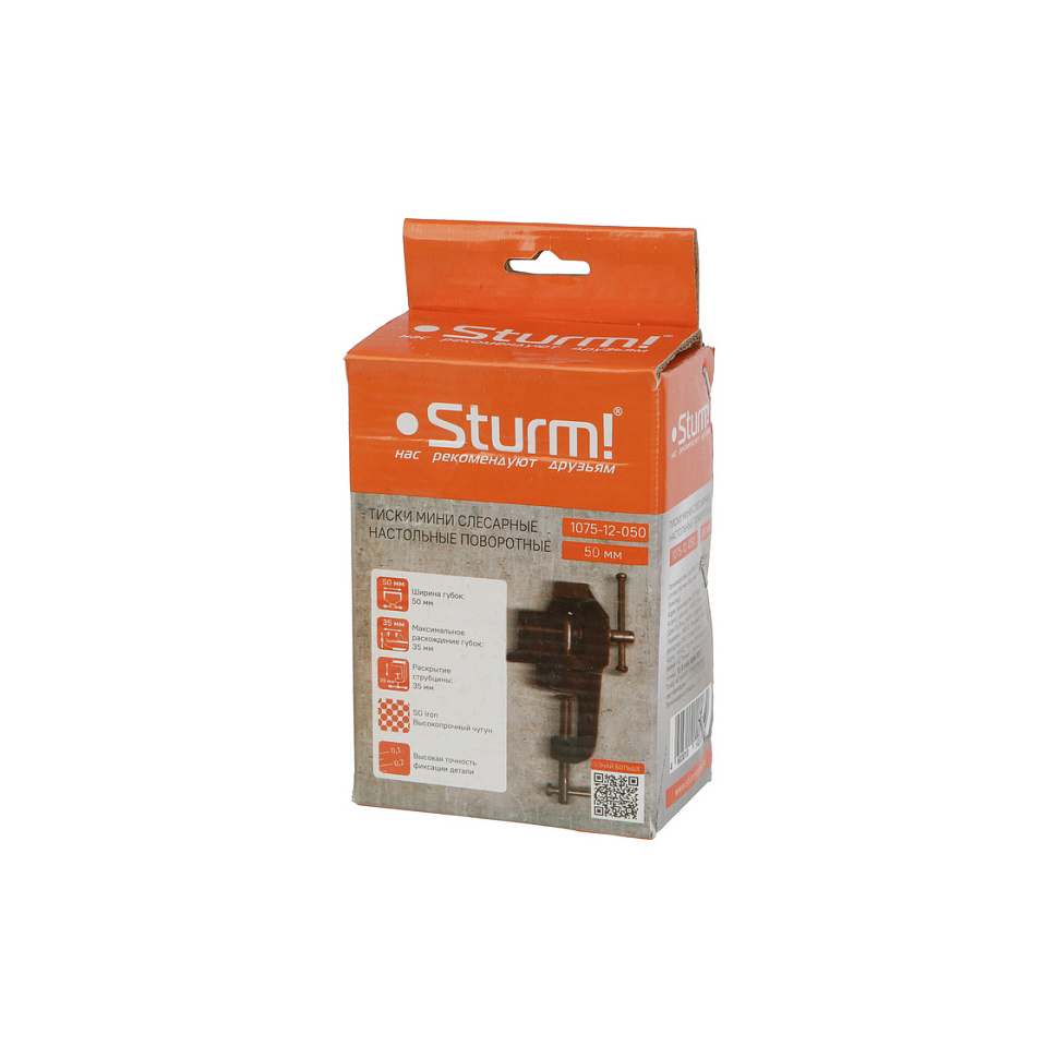 Тиски слесарные мини 50мм, поворотные, на струбцине Sturm (1075-12-050). Коробка. |