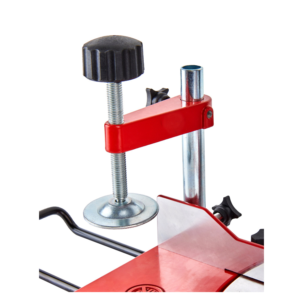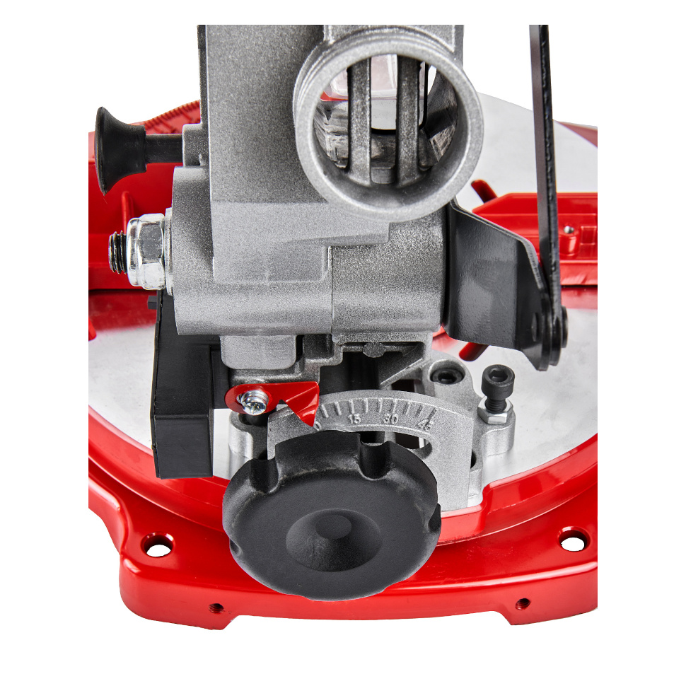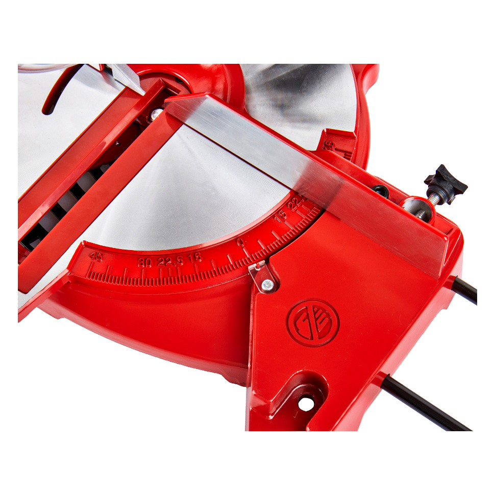 3. Безопасность и контроль - конструкция включает прозрачный защитный кожух и надежный фиксатор заготовки для безопасной и точной работы. Четкая шкала наклонов и поворотов облегчает точную настройку угла реза.