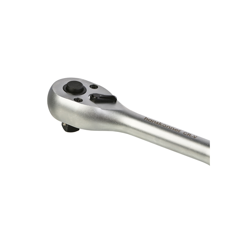 5. Трещотка Хансконнер изготовлена из высоколегированной хромованадиевой стали (CrV), что обеспечивает высокую прочность и износостойкость. Термическая обработка компонентов гарантирует повышенную устойчивость к механическим нагрузкам и деформациям.