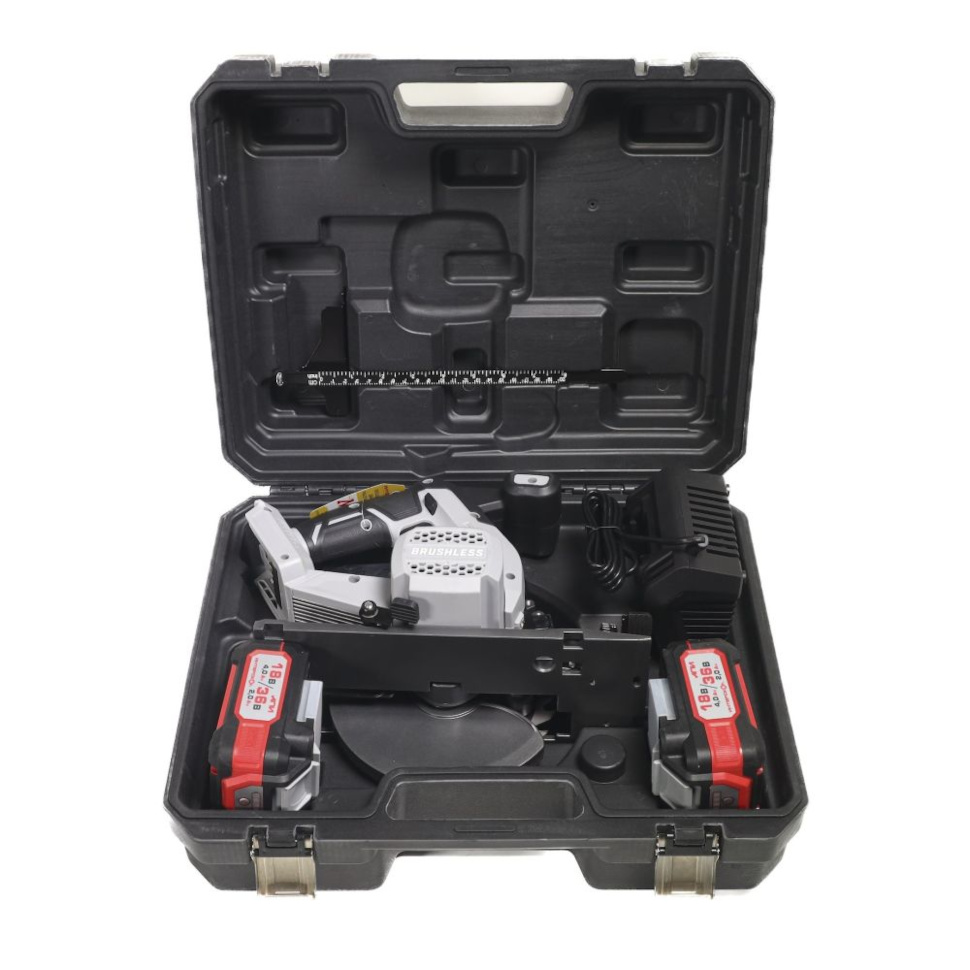 2. Рекордная производительность от одного заряда - высокая энергоэффективность позволяет выполнять более 100 резов стандартной доски на одной аккумуляторной батарее емкостью 2 А/ч, что гарантирует длительную работу без частой подзарядки.