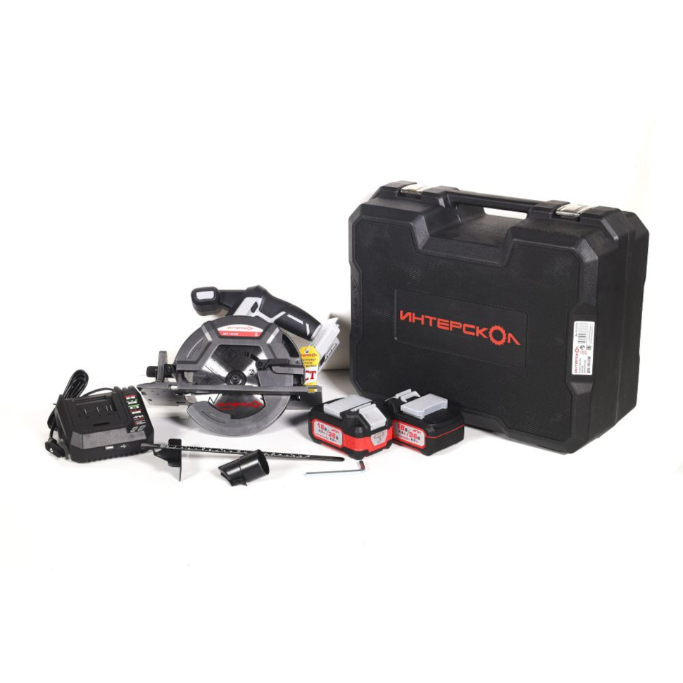 Пила циркулярная аккумуляторная Интерскол ДПА-165/36В (817.2.2.70). Аккумуляторная батарея 36В 2А/ч - 2шт. Зарядное устройство. Диск пильный (установлен на пиле). Линейка направляющая. Ключ S6. Руководство по эксплуатации и инструкция по безопасности. Гарантийный талон. Кейс. |