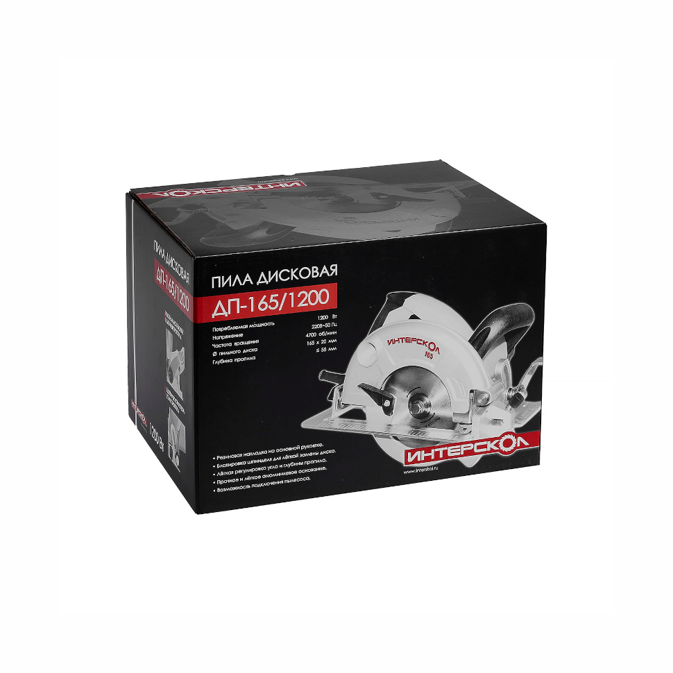 Циркулярная пила Интерскол ДП-165/1200 мощностью 1200 Вт имеет сбалансированную эргономику и систему точной настройки, которые обеспечивают чистый рез без сколов.