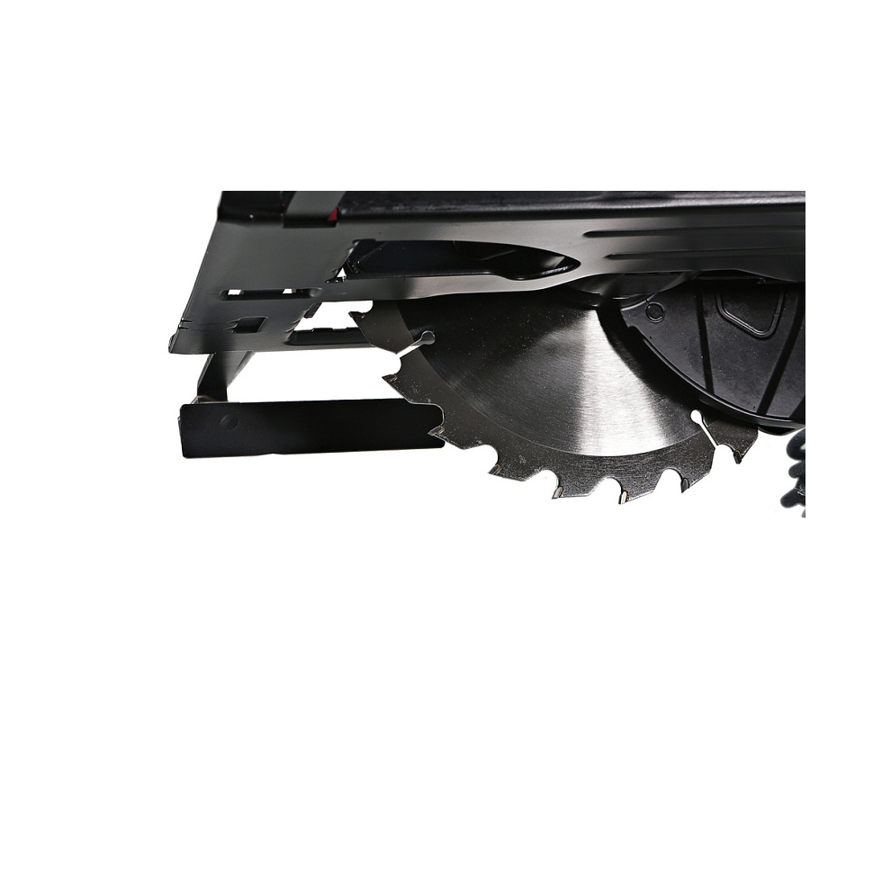 4. Точность и безопасность - прочная стальная опорная платформа с регулировкой угла наклона до 45° гарантирует точность реза. Блокиратор кнопки пуска и автоматический защитный кожух исключают случайный запуск и обеспечивают безопасность оператора. Функция блокировки шпинделя упрощает и ускоряет замену диска.