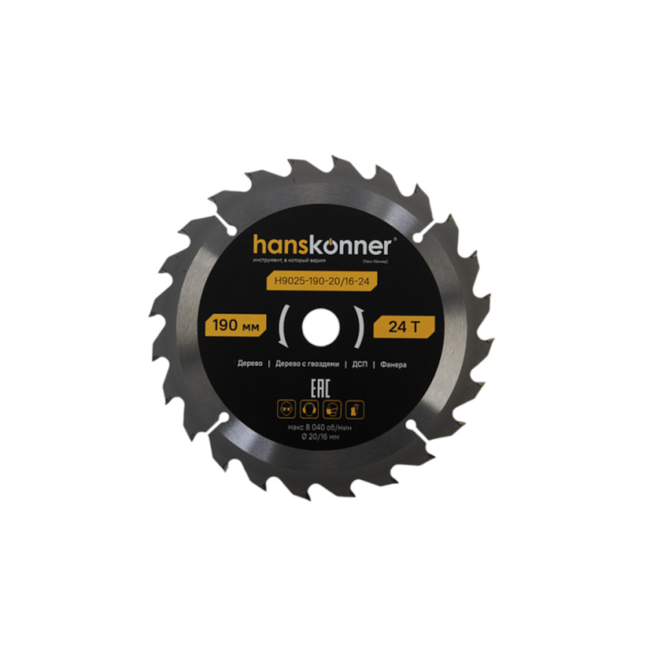 Пильный диск Хансконнер относится к серии ArmorPiercing - это значит, что он изготовлен из твёрдосплава первичного сырья, благодаря чему он способен легко перерезать даже древесину с гвоздями.