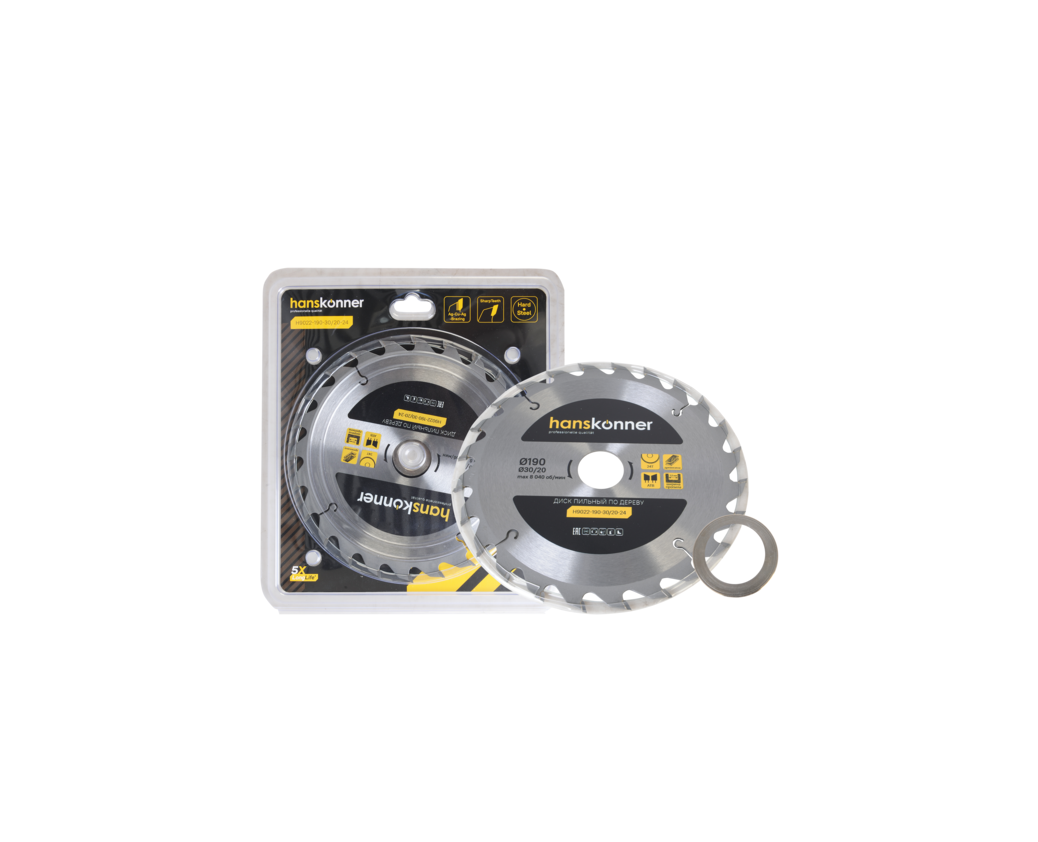 Характеристики Диск пильный по дереву HANSKONNER 190x30/20мм,24Т